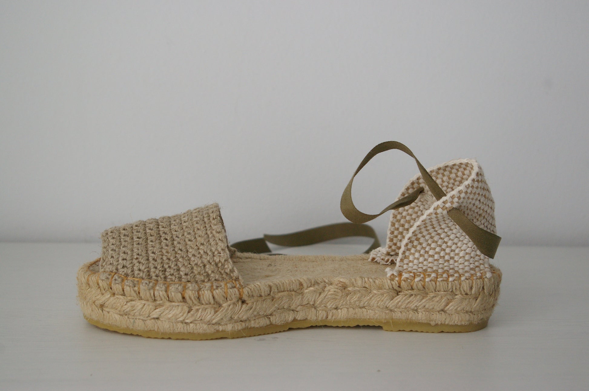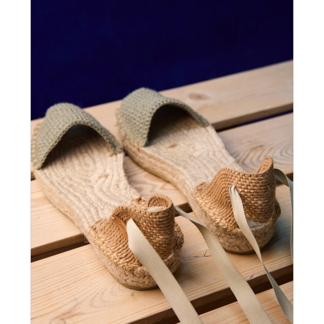 Alpargata tejida con algodón. Doble suela de yute. Disponibilidad en dos colores.